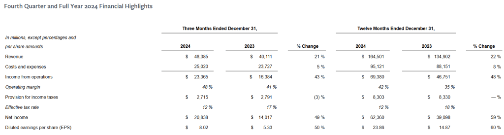 29日当天,Meta公布了截至2024年12月31日的2024财年第四财季业绩,公司第四财季营收483.85亿美元,较去年同期增长21%,高于市场预期的469.9亿美元;净利润同比增长49%至208.38亿美元;摊薄后每股收益同比增长50%至8.02美元皇冠信用网网址。公司的营业利润率从上一年同期的41%升至48%。