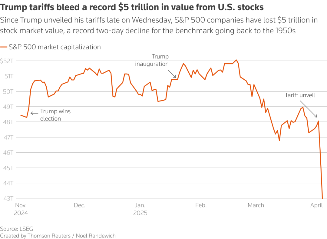 2024年11月至2025年4月皇冠信用盘哪里申请 ,标普500指数市值变化 路透社制图